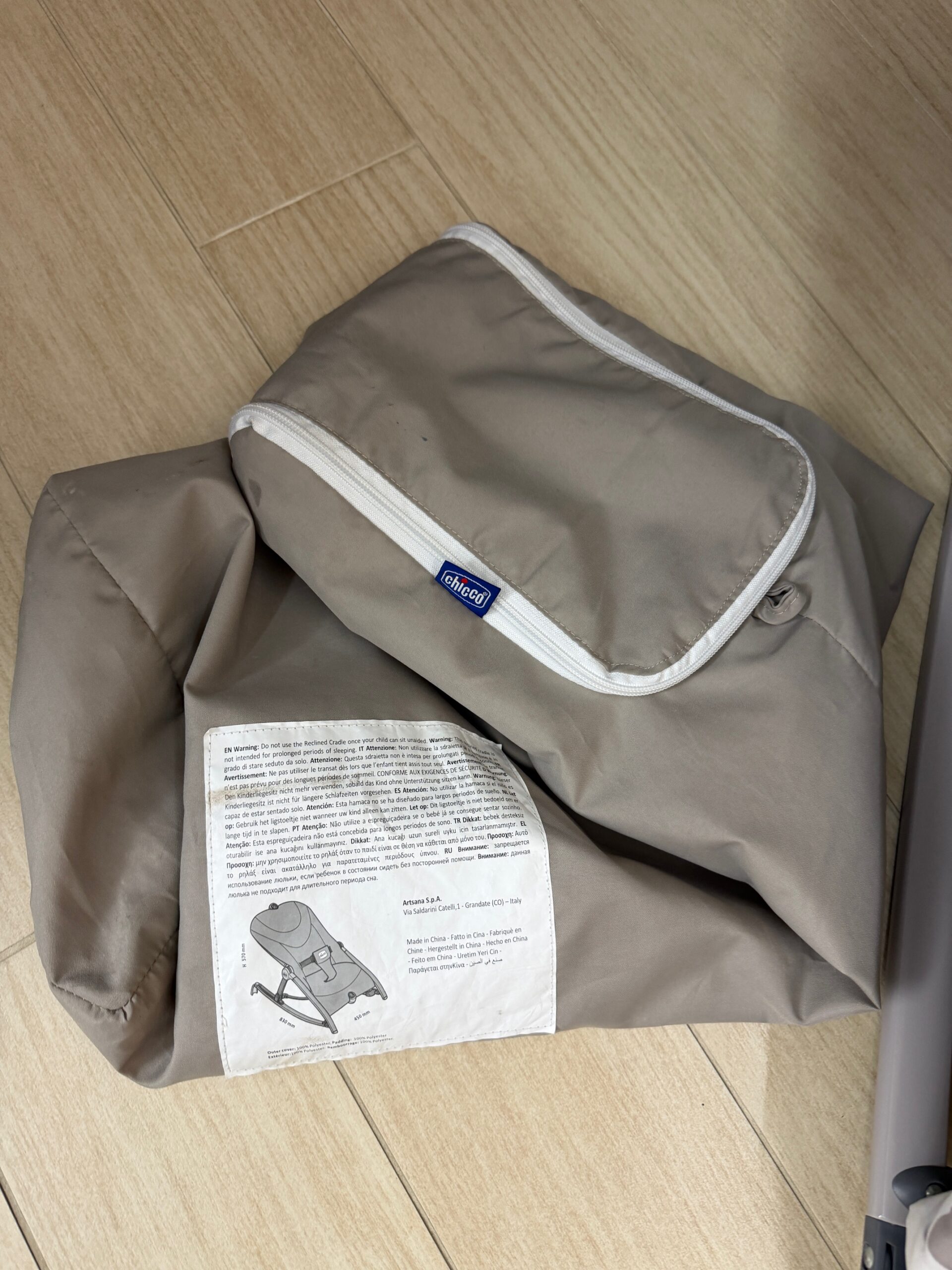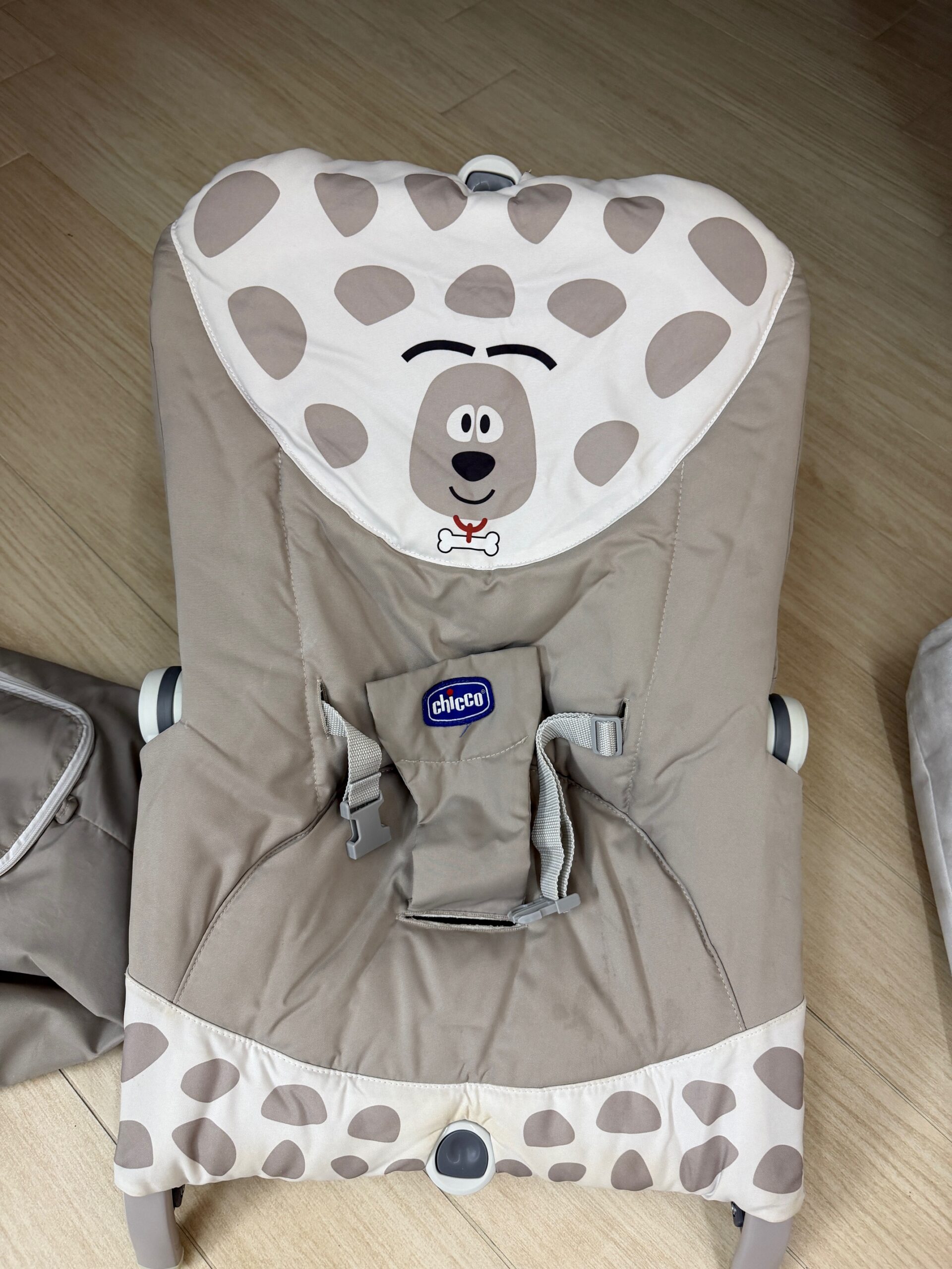 SEDIA A SDRAIO CON DONDOLO, DELLA CHICCO, PRATICAMENTE NUOVA CON SACCA DA TRASPORTO. SI èUO’ USARE SIA FISSA SIA A DONDOLO.